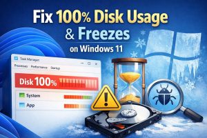 - How to Fix 100% Disk Usage and Freezes on Windows 11If your PC feels slow, freezes, or constantly shows 100% disk usage in Task Manager, it’s frustrating. You’re not alone; this is a common problem on Windows 11, and it’s usually … Read more