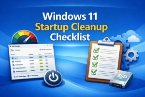 - Windows 11 Startup Cleanup Checklist (Safe & Quick)Here is the checklist that is mentioned in my previous blog post. Read full article here: How to disable Unnecessary Windows 11 Startup Apps If your PC feels slow before you … Read more