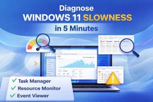 - Windows 11 Running Slow? A 5-Minute Diagnosis That Actually WorksIf your Windows 11 PC is suddenly lagging, menus freezing, or File Explorer stuttering, you don’t need to spend hours troubleshooting. Most slowdowns can be pinpointed in about five minutes using … Read more