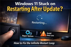 - Windows 11 Stuck on Restarting After Update (Infinite Loop Fix)If your Windows 11 PC is stuck on “Restarting” after an update and never finishes, you’re not alone. The screen may spin endlessly, reboot again and again, or sit there for … Read more